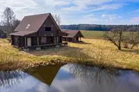 -Участок: Просторный участок 25 соток земли с собственным прудом, где можно ловить рыбу.