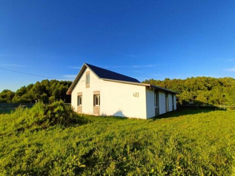 - Одноуровневый бревенчатый дом полностью готов к проживанию.