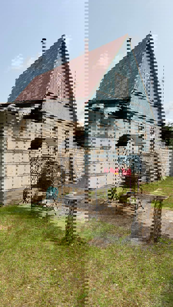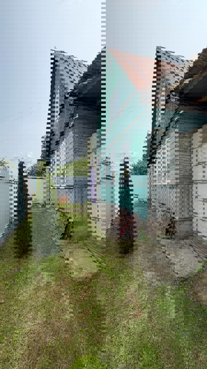 Дом 2004 года постройки, стены каркас, общая площадь 43,18 м2 + 20,73 м2 мансардный этаж и пристройка. В доме печное отопление и рабочий камин, местная канализация, центральный водопровод + во дворе колонка. На первом этаже 2 жилые комнаты и кухня, на мансардном этаже также 2 просторные жилые комнаты. Отделка дома внутри дерево.