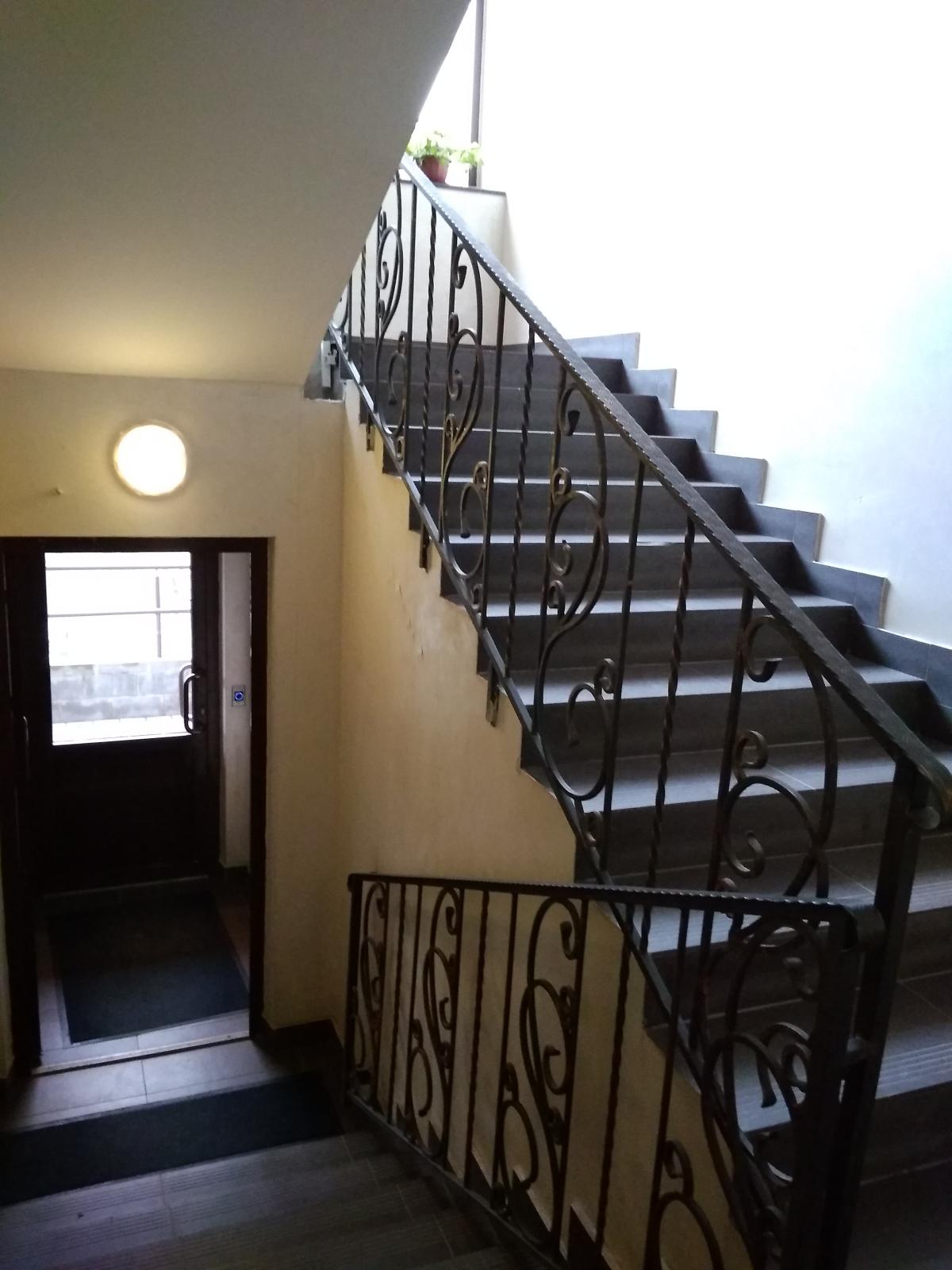 - дорогая отделка подъезда: венецианская штукатурка, кованые перила, панорамное остекление;