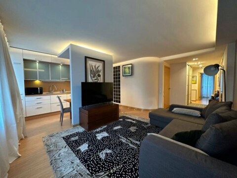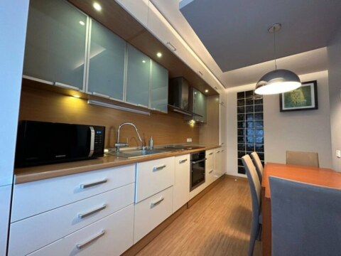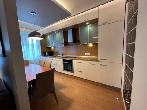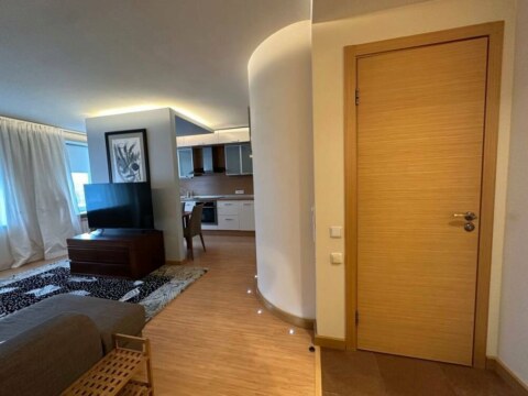 Светлая просторная квартира с шикарной планировкой: кухня-гостиная, две спальни, кабинет, гардеробная и два санузла. Кухня оборудована всей необходимой техникой: электрическая варочная панель, духовой шкаф, вытяжка, посудомоечная машина, холодильник. На полу паркетная доска, потолки комбинированные. Видеодомофон. Установленно 2 кондиционера.