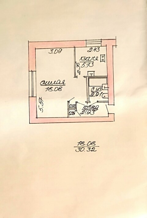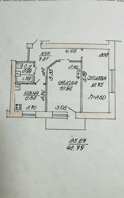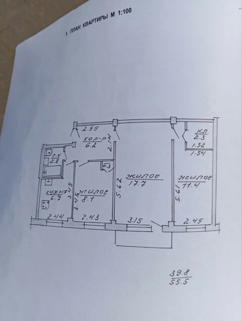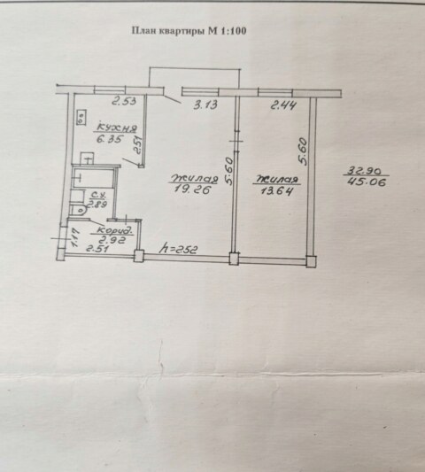 Общая площадь 59,52 кв.м., кухня 8,79 кв.м.