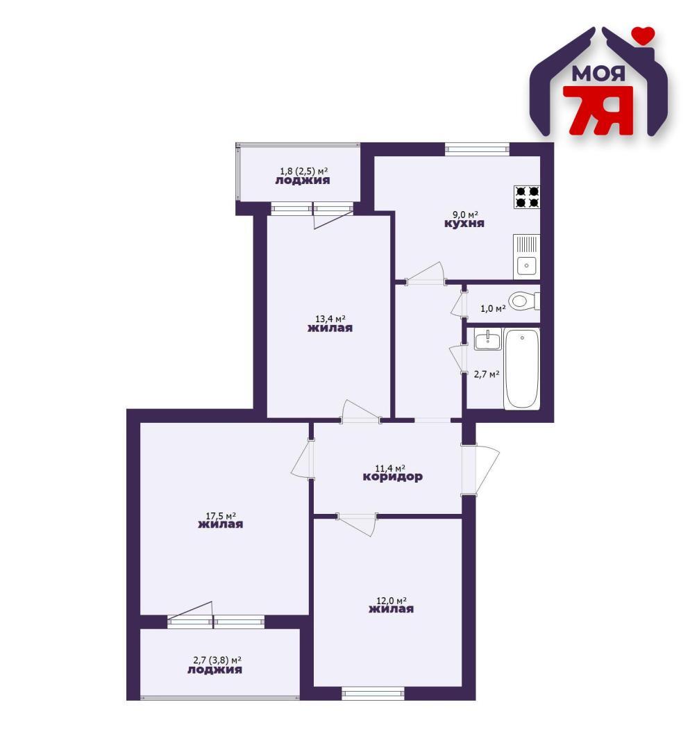 - Квартира расположена на комфортном 3 этаже 3-этажного дома в самом центре города.