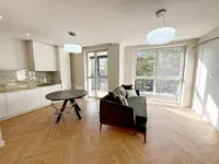 Стоимость квартиры обозначена с готовым ремонтом и мебелью. Квартира с шикарным ремонтом, для отделки использовались только качественные материалы. Полы в жилых комнатах и коридоре выполнены из кварц-винила, подвесные потолки из гипсокартона, стены отделаны декоративной штукатуркой «микроцементом», кухонная столешница из керамогранита.