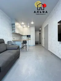 В отделке квартиры использованы высококачественные материалы, которые гарантируют долговечность и надежность. Стильный дизайн и продуманная эргономика создают уникальную атмосферу, в которой приятно проводить время. Гостиная совмещена с кухонной зоной, что делает пространство более открытым и светлым. Кухня выполнена из качественных материалов и оснащена встроенной техникой: холодильником, варочной индукционной поверхностью, вытяжкой и микроволновой печью. Это идеальное место для кулинарных экспериментов и семейных ужинов. Отдельная спальня с выходом на лоджию обеспечивает необходимую приватность и спокойный отдых. Просторная гардеробная — удобный вариант для хранения вещей и поддержания порядка.