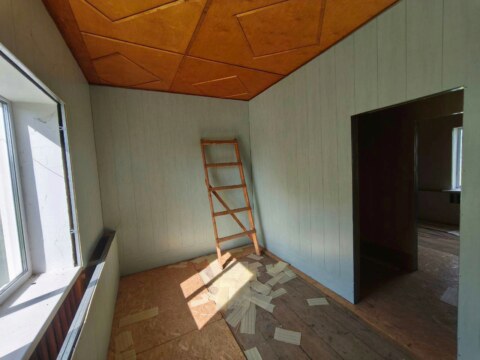 - Помещение имеет высоту потолка 2,4 м, что создает комфортные условия для работы и организации выставочного пространства. Стены выполнены из трехслойных панелей, что обеспечивает отличную тепло- и звукоизоляцию, а также долговечность конструкции.