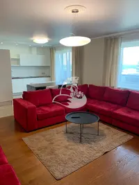 Общая площадь квартиры - 101,7 кв. м.!!!Квартира полностью укомплектована всей необходимой мебелью и техникой (посудомоечная машина, кондиционер, водонагреватель). В квартире - две полноценные спальни и гостиная-кухня, два санузла. Окна гостиной и одной из спален выходят на водохранилище. В доме есть подземный паркинг. Сдается только на длительный срок.