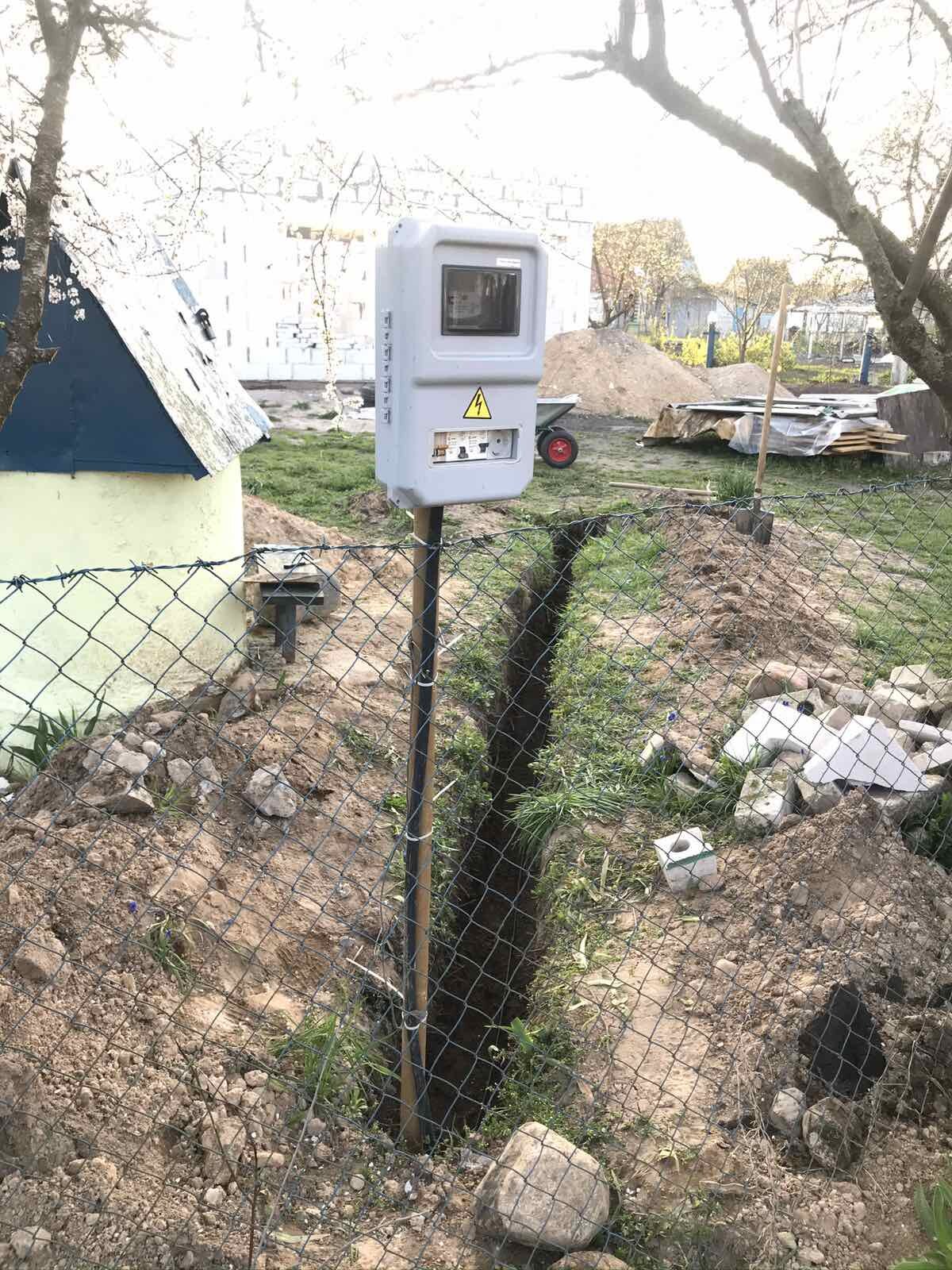На участке имеется вода( своя скважина 54м.), электричество - 220Вт, канализация - местная, 2 антисептика(1-й на 7 колец и 2-й на 4 кольца). Выполнены определённые виды работ.