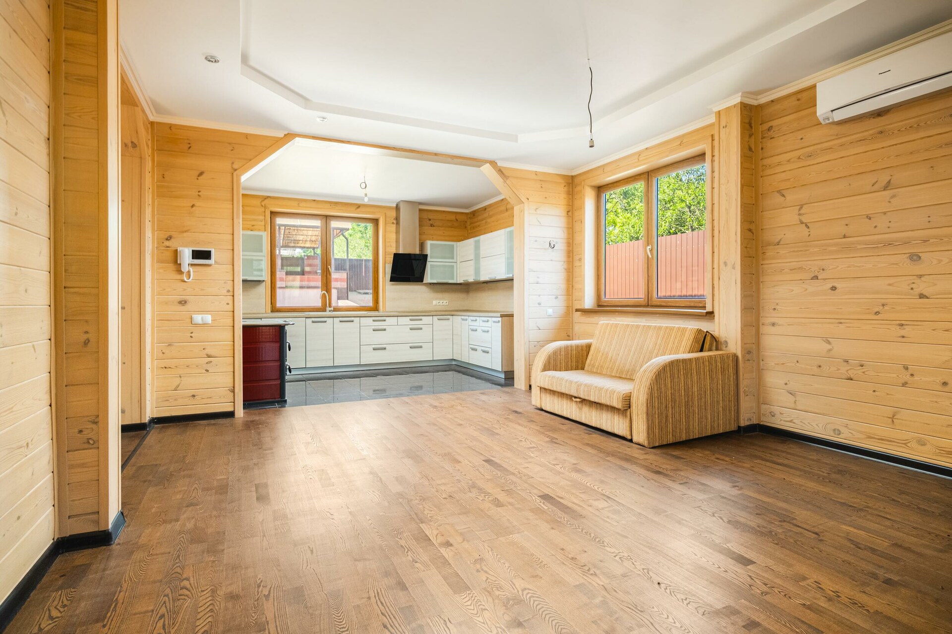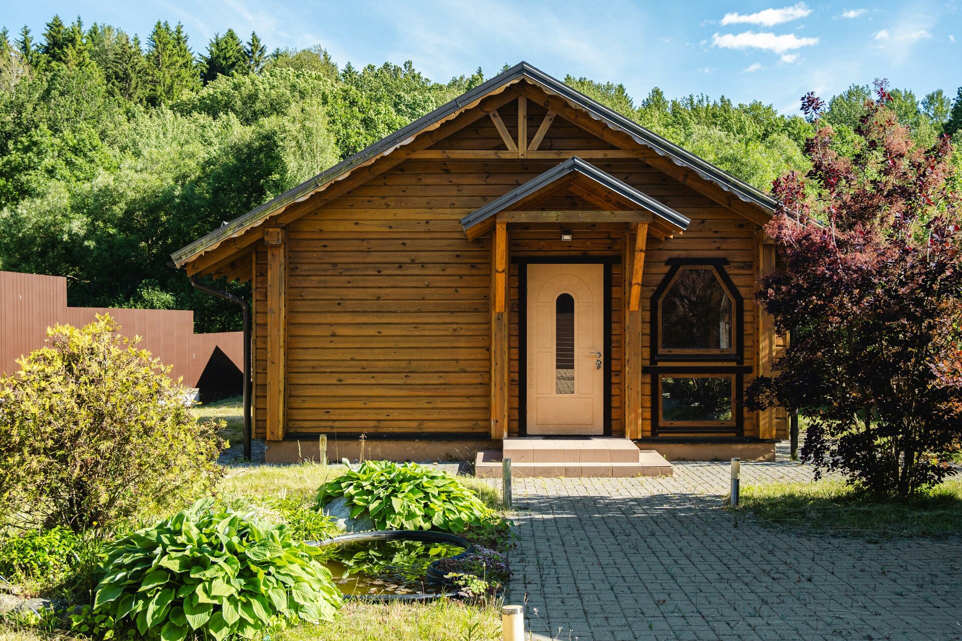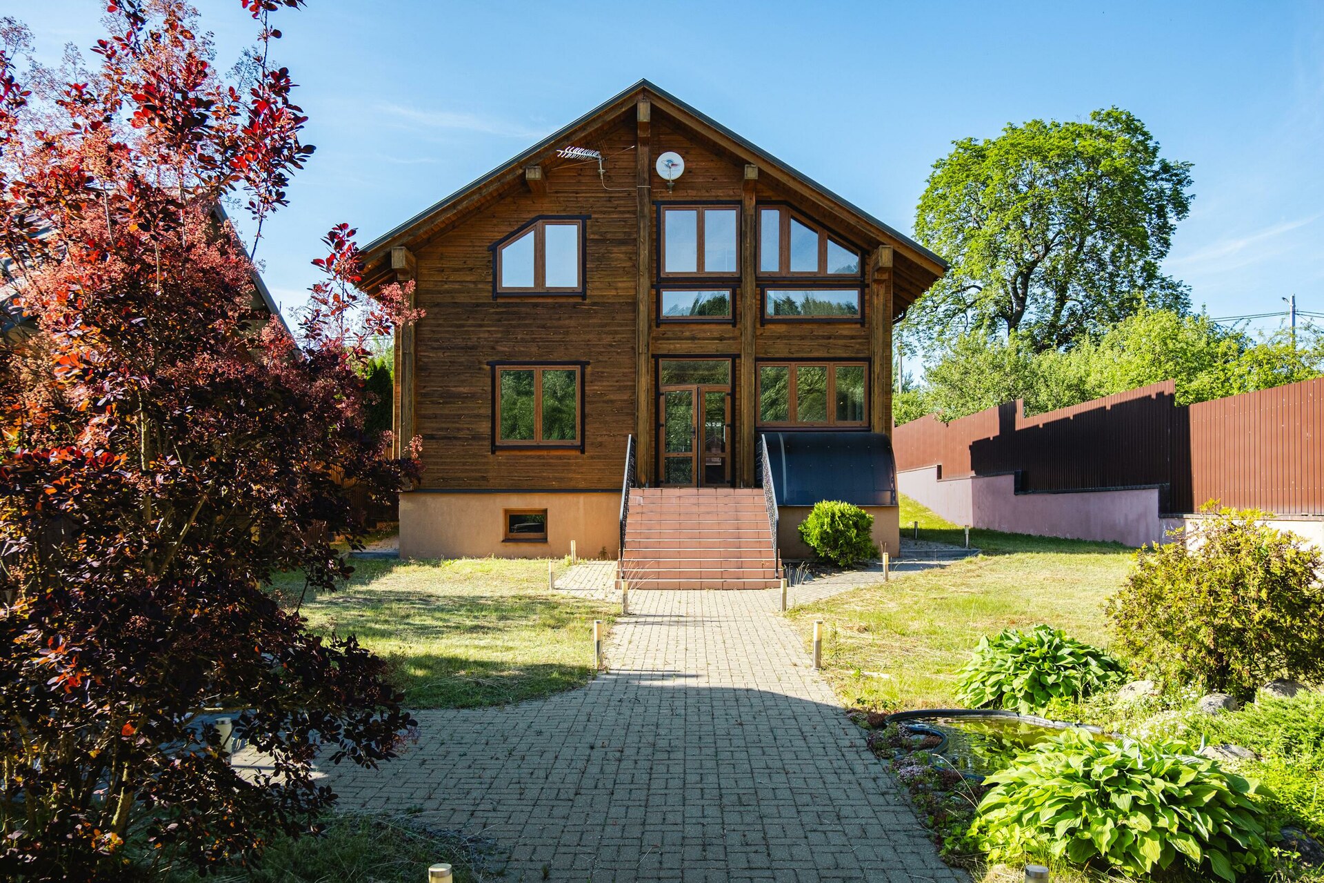 Прекрасный образец загородной недвижимости: технологичный коттедж из профилированного бруса (долговечный и практичный материал).