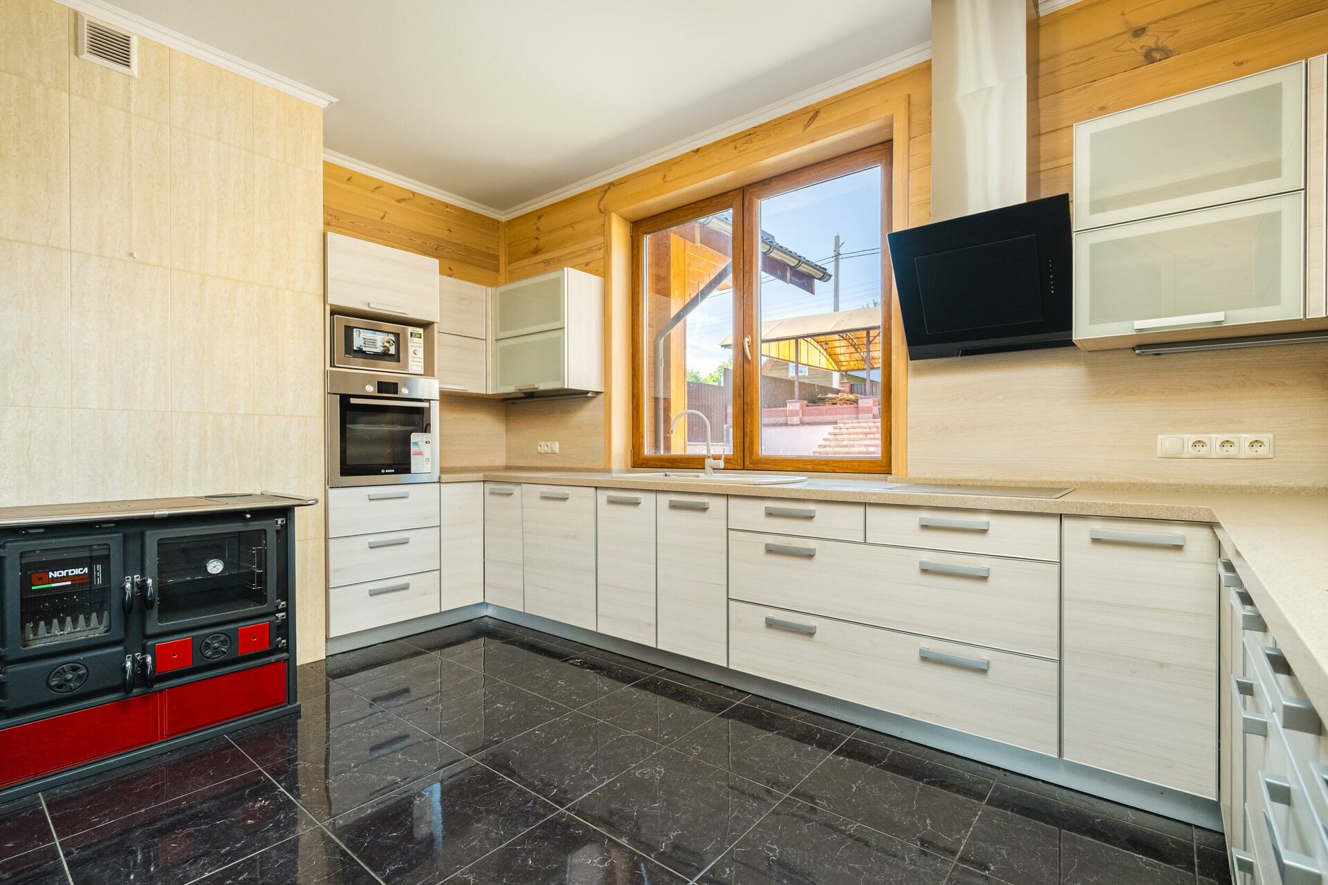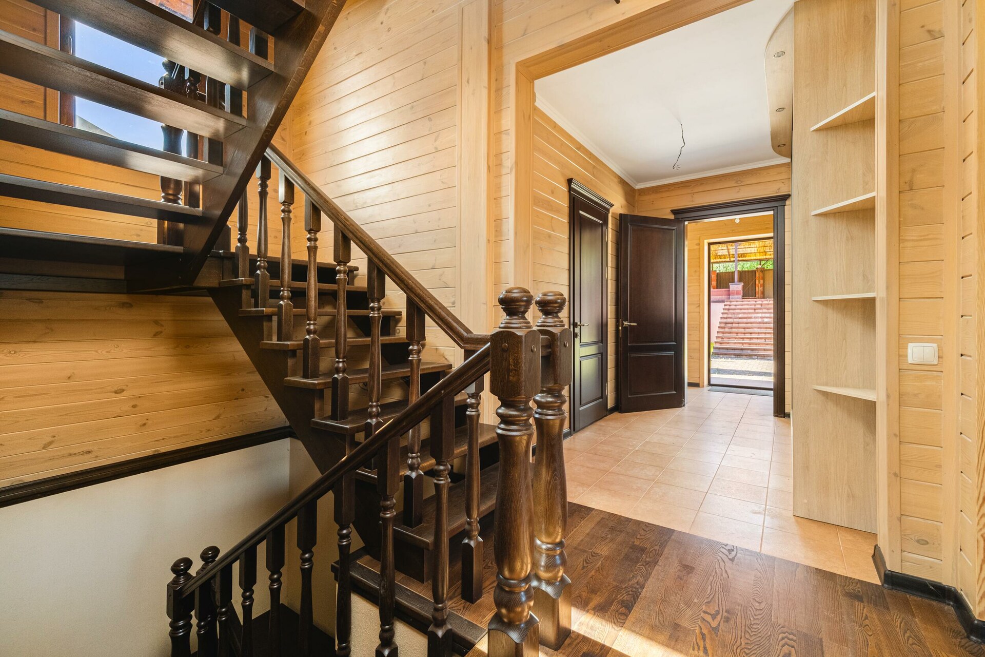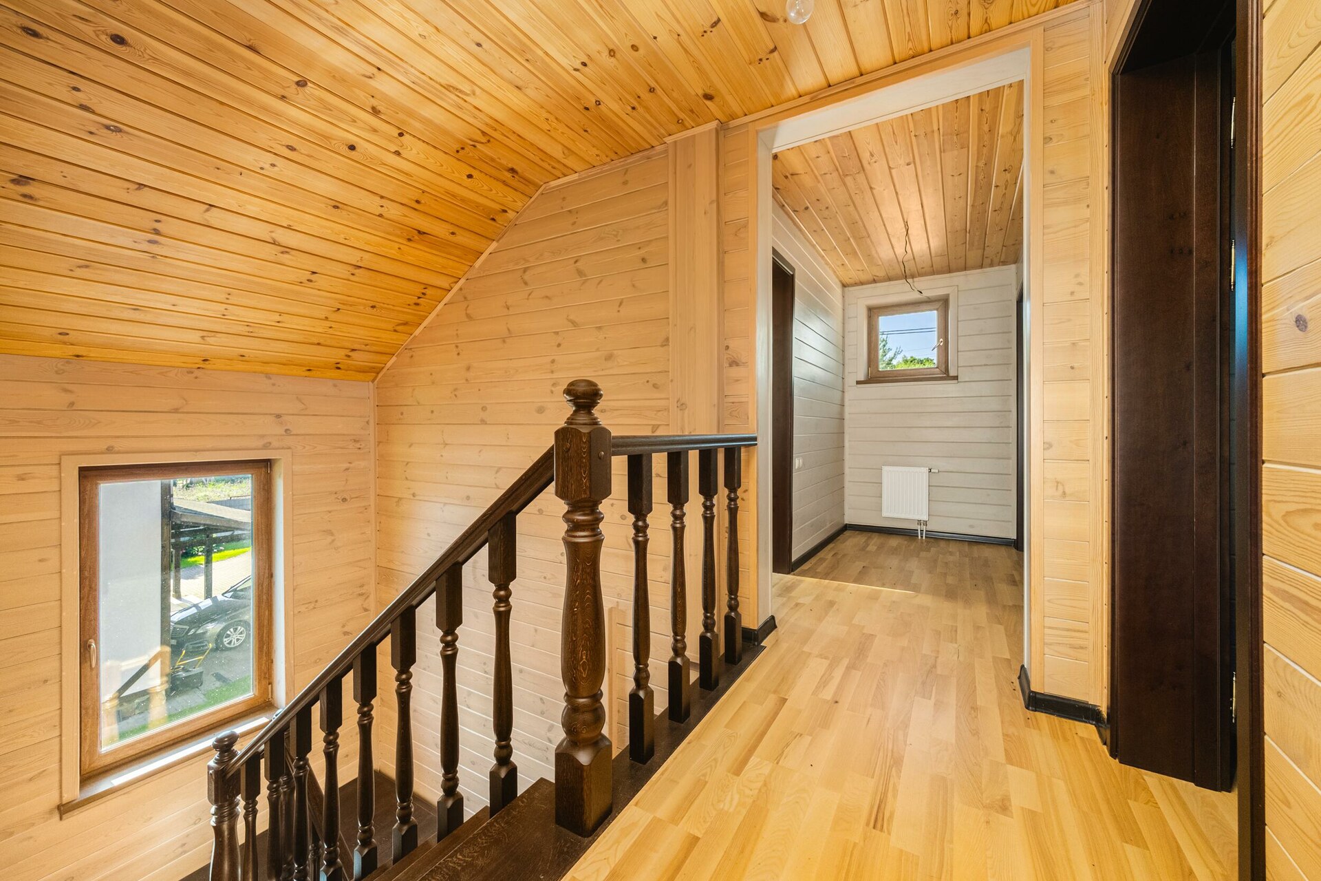 Прекрасный образец загородной недвижимости: технологичный коттедж из профилированного бруса (долговечный и практичный материал).