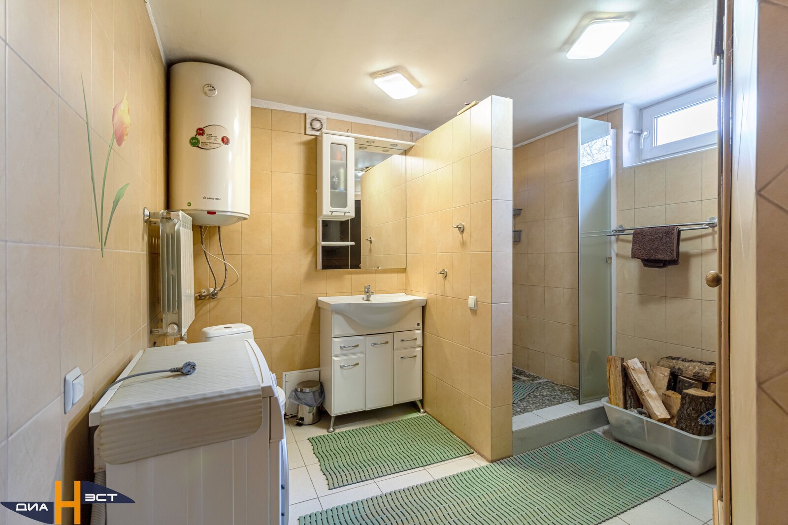 - В доме имеется газовое отопление, при необходимости установлен камин, а так же печь. В доме сделаны теплые полы, так же для отдыха обустроена парилка на дровах;