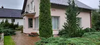 1. двухэтажный жилой дом с цокольным этажом. В цокольном этаже находится гараж, топочная и другие подсобные помещения. На первом этаже есть кухня и большая гостиная с камином. На мансардном этаже три комнаты с балконом. В доме два санузла. Дом подготовлен под чистовую отделку. На первом этаже внутренняя отделка уже частично выполнена.