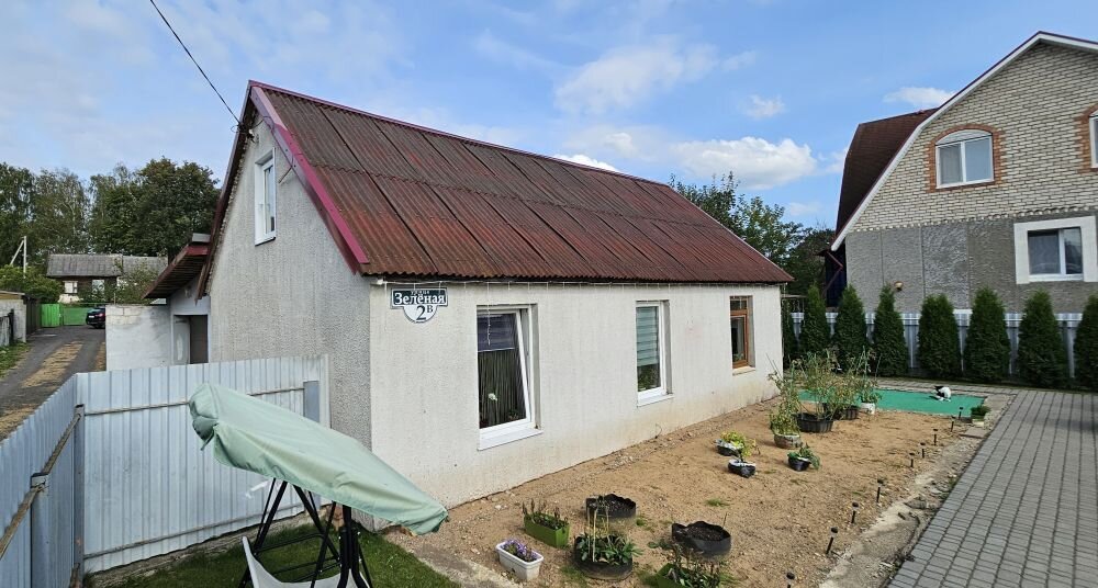 Уютный домик: тёплая спальня, гостиная. Комнаты проходные. Дом блочный, утеплен, оштукатурен. Окна стеклопакеты. Потолки натяжные.На полу в комнате ковровое покрытие, на кухне и в санузле- плитка. Территория огорожена, автоматически открывающийеся ворота. Ухоженный участок. Отдельностоящая закрытая беседка - в беседке комната отдыха, санузел, терраса. Удобное месторасположение - в шаговой доступности магазины, станция Ратомка, ozon, WB, школа, почта