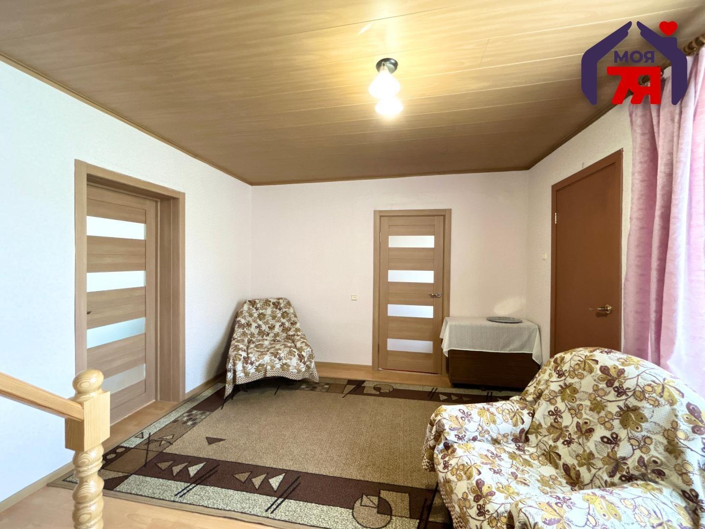 -Дом обшит вагонкой, что обеспечивает дополнительную теплоизоляцию и придаёт интерьеру аккуратный, ухоженный вид. Установлены стеклопакеты, что улучшает шумоизоляцию и сохраняет тепло в холодное время года.