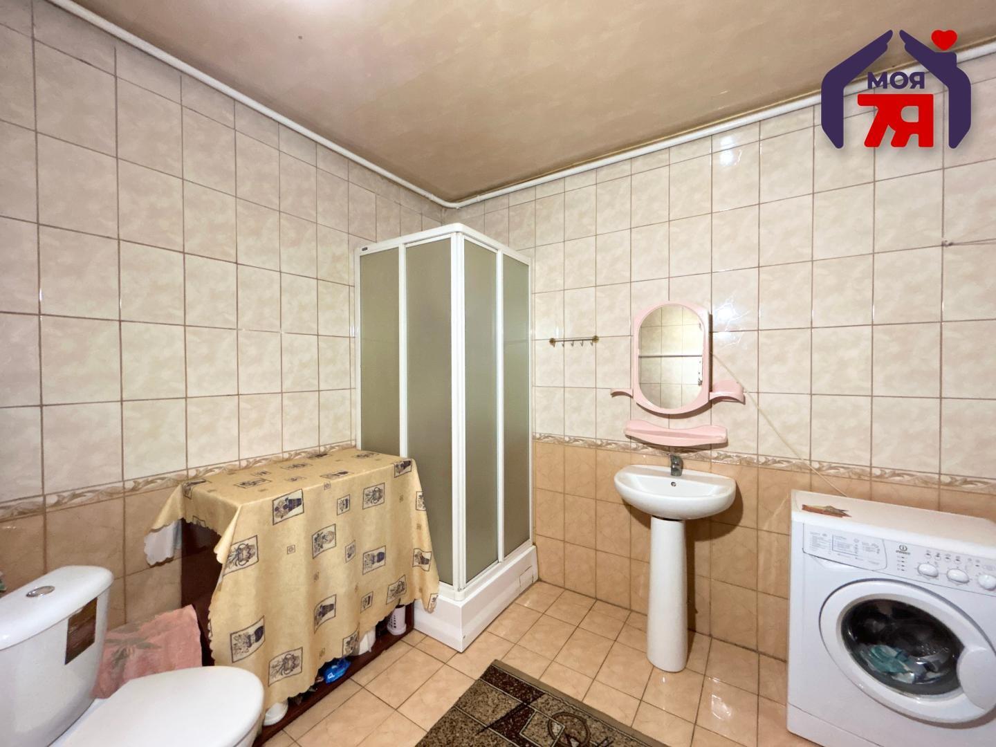 -Ванная комната просторная, облицована плиткой и оборудована душевой кабиной, что делает её не только функциональной, но и удобной в повседневном использовании.