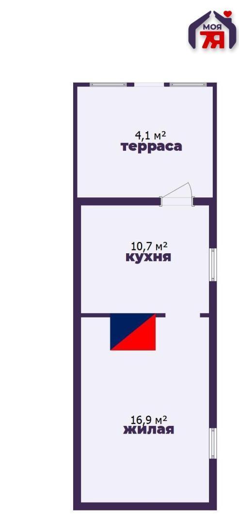 -Общая площадь дома составляет 27,6 кв.м., а жилая - 16,9 кв.м. Площадь кухни целых 10,7 кв.м.
