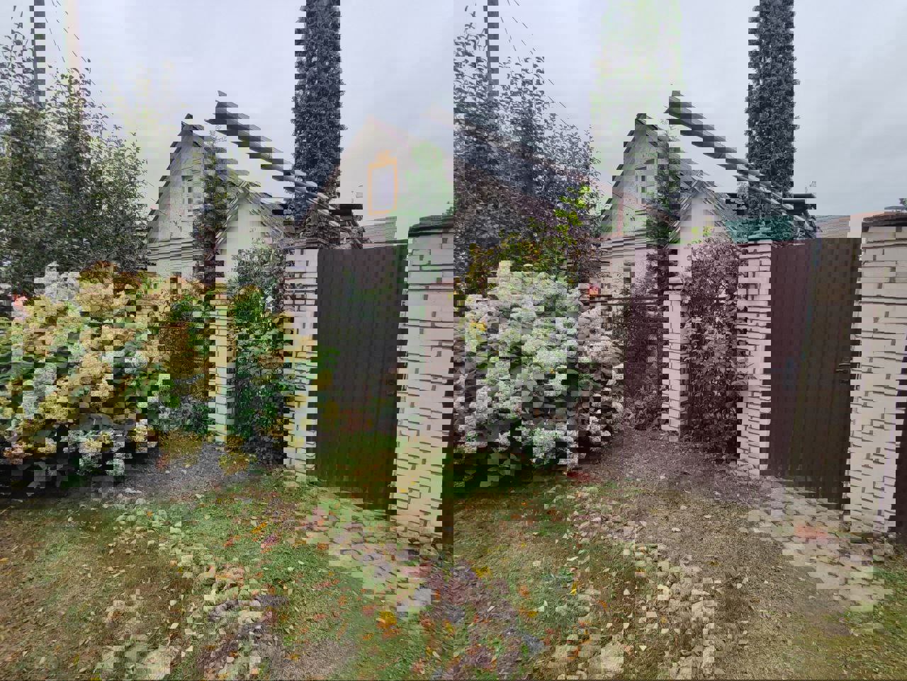 Участок 0.0474 га. Огорожен забором. На нем имеется погреб, детская площадка, хоз. постройки, действующая баня, плодовые деревья и кустарники.