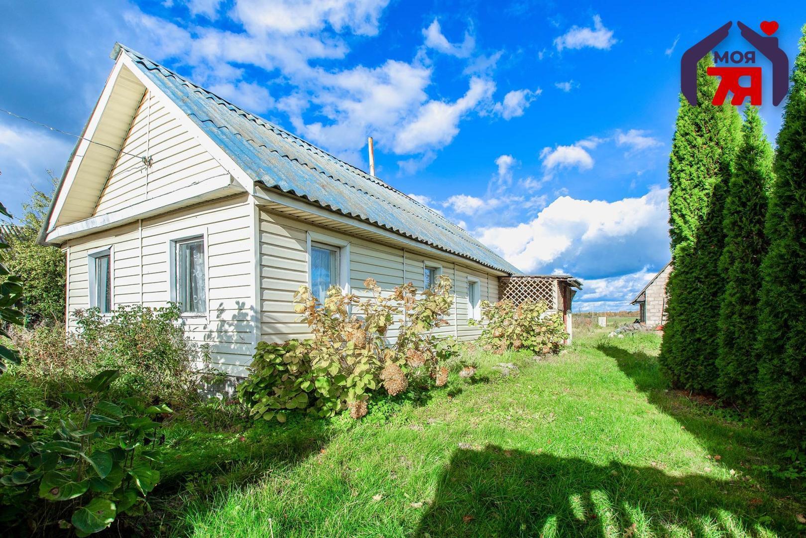 - Одноуровневый бревенчатый жилой дом 1940 года постройки. Фасад дома обшит сайдингом.