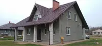 Фундамент дома - ленточный монолит/ бетон. Стены-из газо-силикатных блоков, утеплены пенопластом в системе Термошуба с нанесением декоративно-защитной отделочной штукатурки "Американка". Загрунтованы и подготовлены под окрашивание фасадной краской. Кровля-качественная металлочерепица с отличными характеристиками. Теплая входная дверь. Окна и двери на террасу ПВХ .Чердачная лестница-люк.