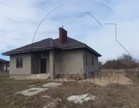 Характеристики: стены из газосиликатного блока оштукатурены, утепление – пенополистирол, материал кровли - металлочерепица, фундамент ленточный монолитный, материал – бетон, стяжка пола черновая, окна и входная дверь ПВХ.