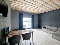 Внутри дом полностью подготовлен для комфортной жизни: во всех помещениях оборудована система «теплый пол», установлен электрический котел и бойлер на 100 литров. В жилых комнатах уложен ламинат, стены оштукатурены и окрашены в нейтральных тонах. Санузел оснащен душевой зоной, умывальником и унитазом. Гостиная и спальня меблированы, кухня оборудована бытовой техникой — можно заселиться сразу после покупки.