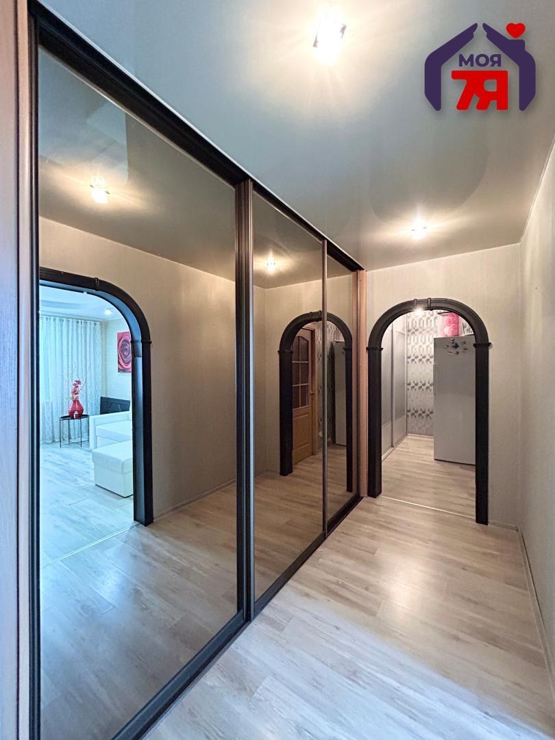 - В квартире расположен шкаф-купе в жилой комнате и большой шкаф-купе в коридоре. Это помогает отлично сэкономить пространство и избавляет помещение от визуального шума. Вы с легкостью расположите все имеющиеся вещи.