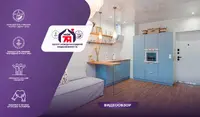 - Квартира выполнена в современном дизайнерском стиле - светлая, продуманная, с выразительной планировкой и четким разделением зон. Пространство включает гостиную, кухню и спальню, создавая ощущение легкости и воздуха. Зона спальни отделена стильной деревянной перегородкой, что придает приватности, но сохраняет ощущение открытого пространства.