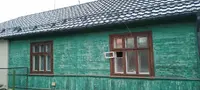 Крепкая доска пола и стены.Межкомнатные двери старого образца из массива. Потолки подшиты ДВП. Сухой погреб , небольшая кладовая. Есть место для устройства санузла в доме.